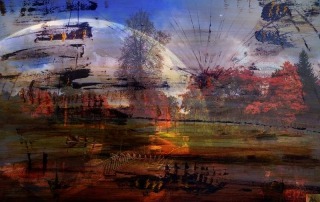 He works with pallet knives and you always can recognize vertical and horizontal stripes and lines that are corrections of the chaos he sometimes put on the canvas. They are referring to the meridians of the Globe. Acryl is his medium and sometimes he combines with pieces of wood, foam or other materials.
